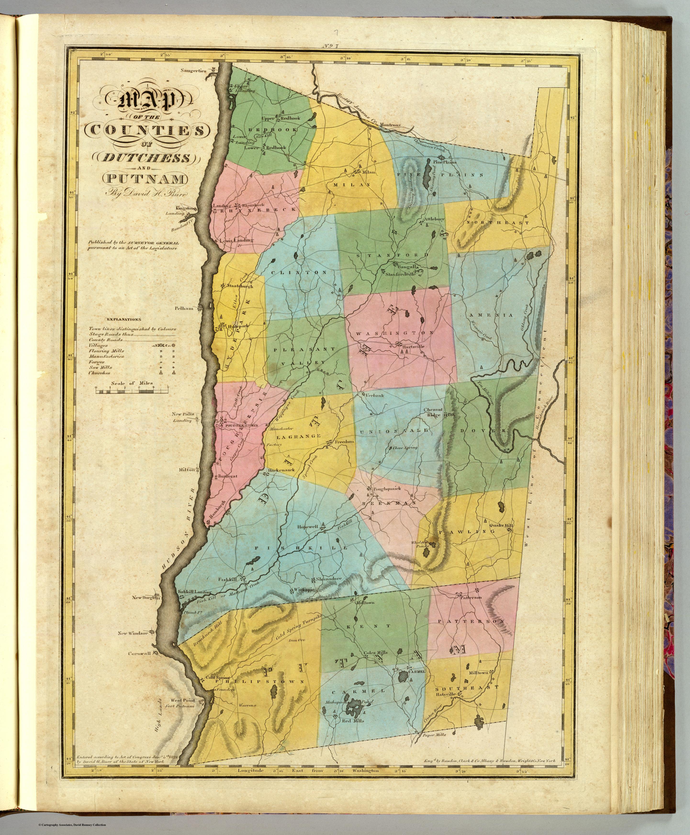 Map of the counties of Dutchess and Putnam. By David H. Burr. Published by the Surveyor General, pursuant to an Act of the Legislature. Entered according to an Act of Congress Jany. 5th. 1829 by David H. Burr of the State of New York. Engd. by Rawdon, Clark & Co., Albany & Rawdon, Wright & Co., New York.